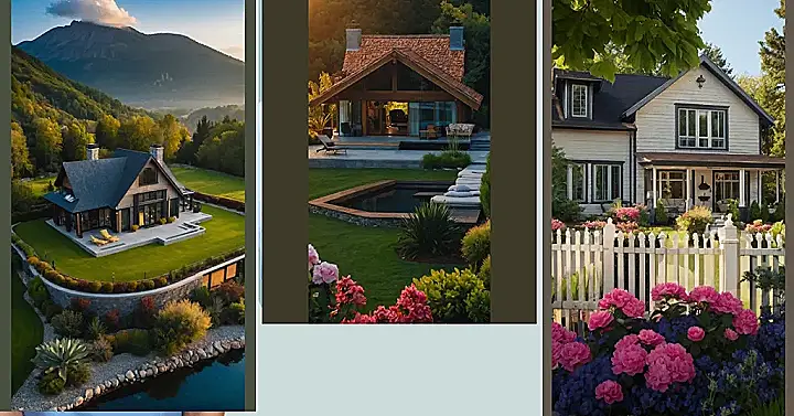 This beautiful house looks like it’s straight out of a fairytale! It’s got a charming wooden roof and those big windows, they look like they’re just waiting for someone to peer in and see what secrets lie inside. But the most magical part? That little pond in front of the house! The water is so still, it’s like a giant mirror reflecting the house perfectly. Maybe it’s even got a little mermaid living in it!