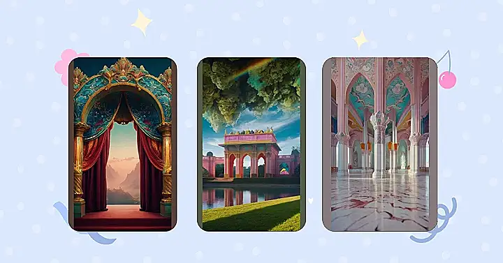 This wallpaper isn’t just “palace wallpaper,” it’s like a party on your walls! I mean, seriously, look at those colours! It’s as if a unicorn threw up rainbows and glitter all over the palace walls – in the best way possible, of course. If your room looked like this, homework would definitely be more interesting.