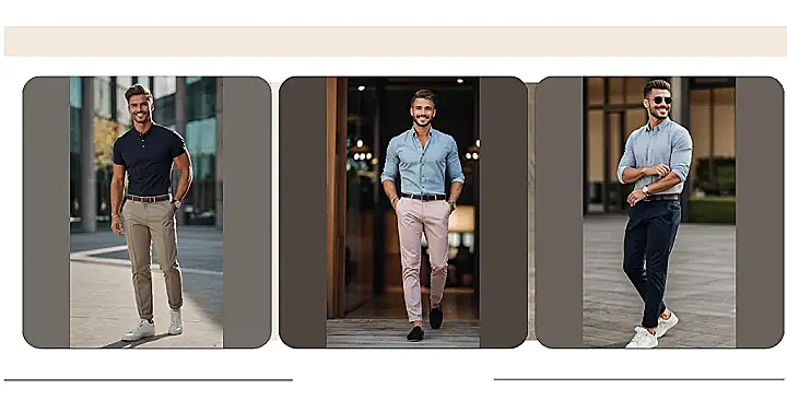 Want to look like you just stepped off a magazine cover without trying too hard? This gent’s rocking the “effortless cool” vibe. The polo shirt and chinos combo is like the peanut butter and jelly of casual wear – a classic for a reason! Plus, the white sneakers are a total game-changer, taking the whole look from “business casual” to “I just run the world in comfort.”