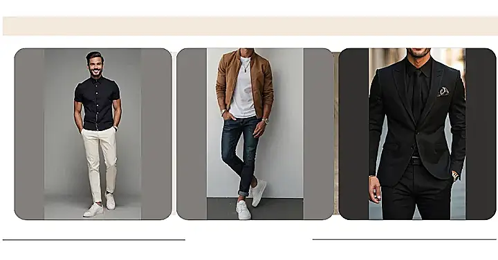 The image shows a guy rocking a timeless outfit that screams “classic.” He’s got on a crisp white t-shirt and sleek black pants. It’s a look that’s clean, sophisticated, and never goes out of style. Think about it: you could put this guy in a time machine and he’d fit right in, whether it’s the 50s, 80s, or even today. And the best part? You probably already have these pieces in your closet.
