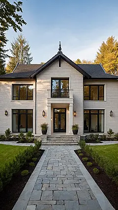 Check out this place! Forget those tiny little cabins from fairy tales; this wood house is seriously leveling up the game. It looks so sleek with all that polished wood mixed with stone, like it just got a major glow-up. You almost expect a knight in shining armor to walk out the front door, or maybe just someone really cool who appreciates architecture that doesn’t look like it was built by squirrels hoarding nuts. It’s got that fancy vibe that makes you think it’s probably too cool for splinters.