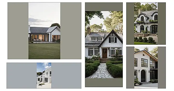 Now, let’s not forget the allure of soothing blue and grey. Picture this: your white cottage contrasting gently with blue window frames, reminiscent of serene ocean waves, while grey accents whisper elegance. This palette is not just calming; it’s a cozy invitation for tea and scones with just the right amount of ‘wow’ factor to keep your friends talking long after they’ve left!