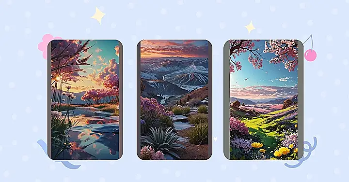 This wallpaper is out of this world! Imagine a magical field of flowers, bursting with vibrant colors under a sunset sky sprinkled with glittering stardust. It’s like someone painted a dream, and it’s the perfect background for your phone or computer. Seriously, it’s so awesome it might just make your homework seem a little less daunting (don’t tell your teachers I said that!).