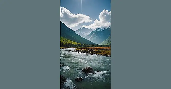 This picture is seriously breathtaking! Imagine setting this as your wallpaper – every time you glance at your phone or computer, you’ll be transported to this amazing place. It’s like a tiny vacation for your eyes! You’ve got these majestic mountains looking all sharp and rocky, and then there’s this super peaceful river just flowing along. It’s the kind of scene that makes you want to grab a picnic basket and some comfy hiking boots and just chill out for the day! Pretty sure even your grumpy math teacher would crack a smile at this view.
