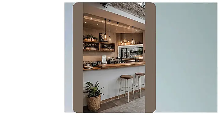 Sitting on those sleek stools at that smooth wooden counter feels like you should be discussing important things, like whether oat milk is truly superior or if sprinkles on whipped cream are ever too much (the answer is no, by the way). The tall green plant in the corner is probably just chillin’, absorbing the good vibes and maybe eavesdropping on coffee conversations. This spot has that perfect mix of cozy and cool, making you want to pull out a notebook, draw something awesome, or just sip something warm and pretend you’re the main character in a really good movie. It’s a prime example of coffee bar ideas done right!