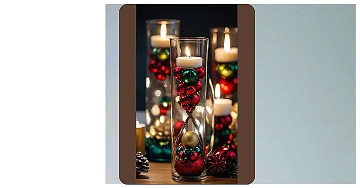 Seriously, who needs a boring old Christmas tree when you could have these gorgeous candle displays? They’re so much fun and way more unique. It’s like a Christmas ornament party in a glass, perfectly sized for some serious holiday cheer. Plus, the candles add a touch of elegance – they are totally sophisticated and festive at the same time! It’s the perfect blend of luxury and whimsical fun.