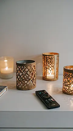 Hey there, future interior designers! Ever wished your room looked like something out of a magazine, but without spending a fortune (or having your parents’ bank accounts involved)? This picture shows you can totally do that with a little DIY magic! See those awesome candle holders? Forget expensive store-bought stuff; you can probably make something similar using old jars, paint, and a little bit of creativity. Imagine the satisfaction of having friends over and proudly showcasing your handmade decor! It’s way more rewarding (and cheaper!) than buying ready-made things, plus it lets your personality shine through.