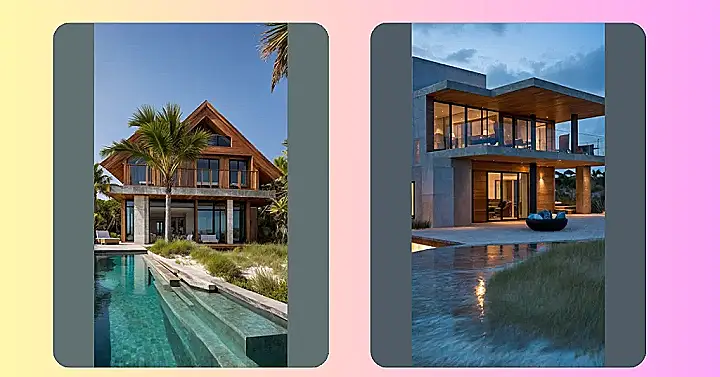 Wow, check out this beach house design! It’s basically the grown-up version of building the coolest sandcastle ever, complete with a pool that looks like a slice of ocean right next to the actual ocean. You could probably swan dive from your bedroom window (don’t actually do that!) and land straight into that sparkly water. Forget boring walls, this place is all about crashing waves and chilling under palm trees, making your regular house feel like it’s missing a serious tan and maybe a lifeguard stand.