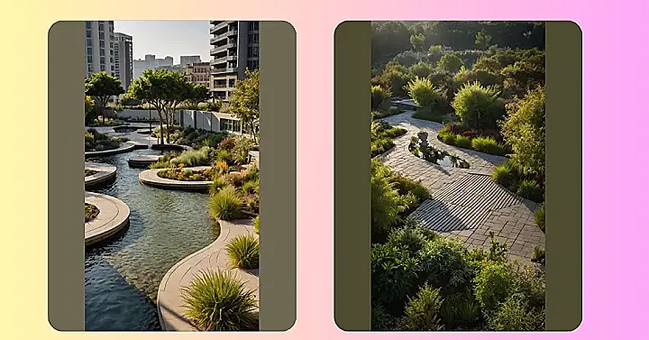 Think cities are just endless blocks of concrete where the only green you see is maybe a lost weed trying its best? Nope! Some clever folks, like the ones who planned this cool spot, are totally upgrading the urban scene. They’re basically giving our busy city landscapes a fancy makeover, adding watery features that look like they’re doing a little dance and plants that probably feel like they just won the lottery because they get to hang out in such a nice place instead of a cracked sidewalk. It’s like Mother Nature decided to throw a surprise party in the middle of downtown!