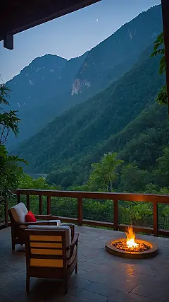 Okay, if this isn’t the definition of an “aesthetic place,” I don’t know what is. Picture this: you’re chilling in those epic chairs, fire pit crackling like tiny party poppers, staring at mountains that look like they just rolled out of a painting. Forget your messy room or the school hallway, this spot is pure vibe check success. It’s the kind of place where you expect inspirational quotes to float by on the breeze, or maybe just a really good snack delivered by a friendly squirrel. Seriously, my couch suddenly feels deeply un-aesthetic compared to this setup.
