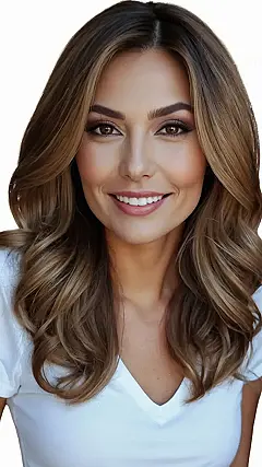 So, you’re thinking about what hairstyle screams “I’m not getting older, I’m leveling up!” This picture is like a secret cheat code. See those soft, gorgeous waves? They’re not just pretty, they’re like a magic trick making you look youthful and chic without even trying that hard. It’s like having your own personal hairstylist following you around, except you just have to style it once in the morning.