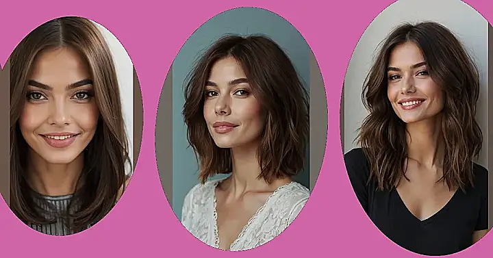 This picture is all about those awesome mid-length haircuts! Just look at this gorgeous model – her hair is like a perfectly styled chocolate waterfall, framing her face in the most flattering way. It’s not too short, not too long, it’s just right, like Goldilocks found the perfect porridge of hair! You can totally imagine her rocking this look at school, at a party, or even just hanging out with friends. It’s versatile, stylish, and totally on point.