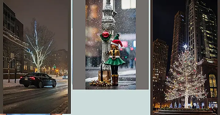 This picture shows us that even though it’s cold outside, there’s still a warmth and joy that comes with the holiday season. The twinkling lights on the tree and the snow-covered street create a magical ambiance, making you feel all cozy and festive. It’s like a reminder that even in the middle of the city, there’s always a bit of Christmas magic to be found!