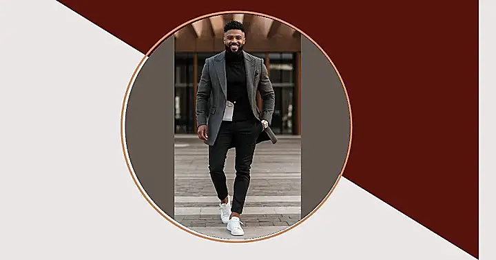 Seriously, this look is all about effortless style. It shows how easy it is to blend sharp pieces, like a tailored jacket, with relaxed items like a comfy turtleneck and stylish sneakers. No need for a suit and tie to impress—this outfit’s the ultimate example of how to dress casually while still making a statement. It’s the kind of outfit that would make your teachers do a double-take—in a good way, of course!
