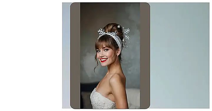 This picture shows a super festive hairstyle perfect for Christmas! Imagine rocking this look at your holiday party – all your friends will be saying, “Wow, that’s *snow* much better than my hair!” It’s got this amazing sparkly snowflake headband, which is way cooler than any reindeer antlers you’ll find at the mall. The hairstyle itself is elegant but still fun, like a fancy winter wonderland. Plus, that red lipstick? Totally adds a pop of Christmas cheer!