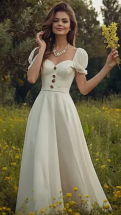 And those buttons! They’re like the perfect little accents that bring the whole look together. This dress is proof that simple can be totally stunning. Plus, it looks super comfy, which is always a win. Now, if only I could find a field of wildflowers just like that to go with it!