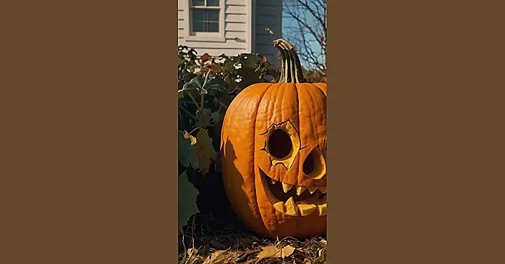 This jack-o’-lantern might have a friendly face, but remember, pumpkins are often used for Halloween decorations. They can be scary too! If you’re looking for some ideas to carve your own spooky pumpkin, think about giving it a scary grin or some wicked teeth. And don’t forget to light it up for a truly terrifying effect!