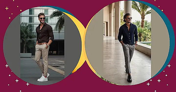 Want to level up your style game? This dude’s got it figured out. He’s rocking a simple but super effective look: a nice button-down shirt and some slick pants. It proves you don’t need a ton of flashy stuff to look like you just stepped out of a magazine. Plus, sunglasses are always a good idea for that extra coolness factor.