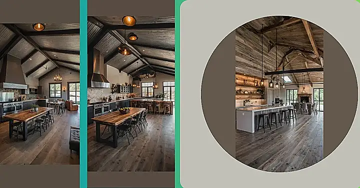 You hear “small barndominium” and might picture a tiny box, but look at this! It’s like a barn decided to get a serious glow-up and become the coolest kitchen ever. That high ceiling and those giant lights make the place feel huge, definitely not what you expect from something called “small”. You could easily fit your entire friend group around that giant wooden table for pizza night, probably arguing about who gets the comfy seat or who has to help clean up later.