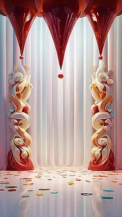This totally rad wallpaper is perfect for celebrating your anniversary! Imagine the scene: you and your sweetie, surrounded by swirling, candy-colored columns that look like they’re straight out of a dream. It’s like a super fancy dessert party, but instead of eating cake, you’re staring at a totally awesome backdrop that would make even the grumpiest grandma smile. That little red apple hanging down is the cherry on top – get it? It’s practically begging you to celebrate another year of awesome memories!