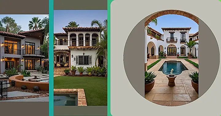 Imagine this: You’re strolling into a home straight out of a movie – all white walls, terracotta roofs, and arches that whisper tales of sun-drenched siesta. It’s a hacienda, a style of home that screams “relax” while secretly plotting your next amazing pool party. The huge tree in the courtyard almost seems to be saying, “Come on in! It’s shady and awesome under here.” And those giant planters? They’re not just for show; they’re silently judging whether you brought enough snacks for the fiesta.