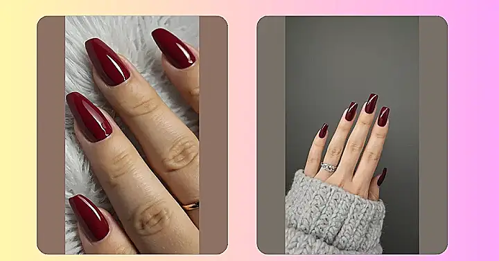 Wow, those nails are seriously red! Like, so red they could be mistaken for a fire hydrant. Maybe a fancy, shiny fire hydrant. Seriously though, that deep red polish is perfect for fall. It’s like a warm hug for your fingertips, and totally screams “autumn vibes”.