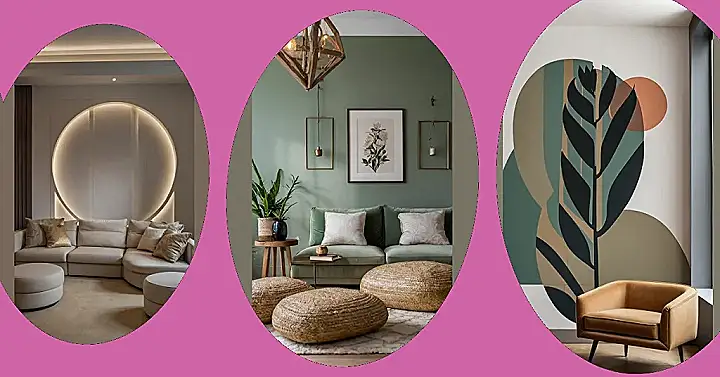 That’s not just a wall, that’s a masterpiece! Check out this amazing wall decor – it’s like a modern botanical garden exploded with colour and shapes all over the wall! Imagine a super chill plant life decided to hang out on your wall, got a little artsy, and added some funky circles and calming earth tones. It’s the perfect way to add some personality to any room without screaming for attention, just a sophisticated whisper of style.