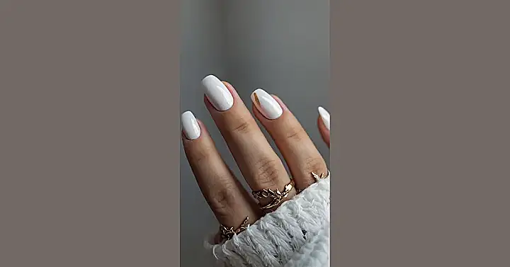 These nails are so white they make the gold rings on the fingers practically glow! It’s like a sparkly, minimalist art piece. It’s a classic look that’s perfect for anyone who wants to feel confident and stylish. I bet the person in the photo can’t wait to show off these amazing nails to everyone!