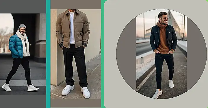 Hey there, fashion fans! Check out this awesome winter outfit. Forget freezing your buns off – this dude’s got the perfect blend of cozy and cool. That taupe puffer jacket is serious business; it’s like a warm hug you can wear. Pair that with some sharp black trousers and crisp white sneakers, and you’ve got yourself a streetwear look that’s ready to conquer even the iciest sidewalks. Think of it as a stylish survival kit for those chilly winter days.