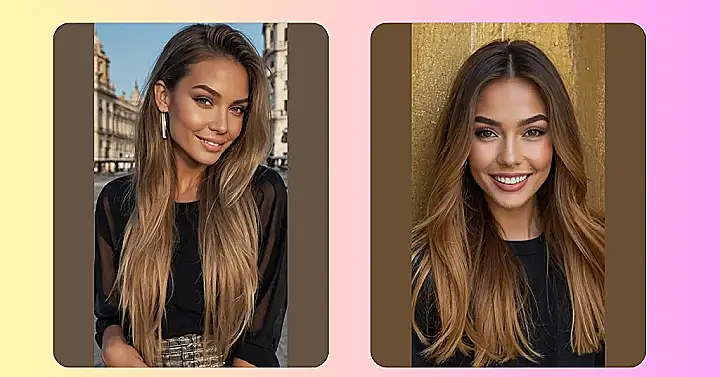 This model is rocking some seriously gorgeous hair! Imagine trading in your summer highlights for something rich and warm, like the honey-brown tones she’s sporting. It’s the perfect way to embrace the cozy vibes of winter without sacrificing your blonde base. Think less “beach waves” and more “sweater weather chic”—a total upgrade for those chilly months!