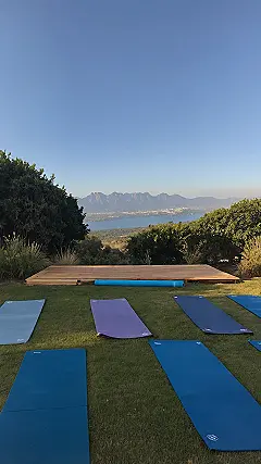 Feeling like your brain is doing homework sprints and social media marathons all at once? Check out this spot! It’s basically the ultimate chill zone, lined up with colourful mats like tiny, comfy islands waiting for you. This is what ‘mindful space’ looks like when it decides to throw a party outside with an awesome view of mountains and water. No pop quizzes here, just grass, fresh air, and maybe a squirrel watching you try not to fall over in Tree Pose while thinking about what’s for dinner.