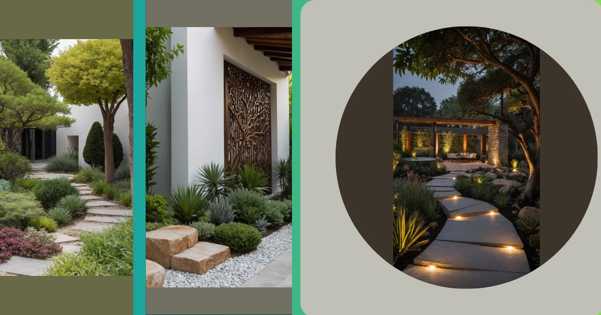 Just look at this place! It’s so stylish, even your phone would want to take a selfie here. The smooth white walls and those fancy brown screens give off total chill vibes, almost like a secret hideout from the blazing sun. And those big, comfy-looking stepping stones? They’re practically inviting you to stroll right in and pretend you’re on a luxury vacation, even if you’re just heading to take out the trash. Plus, all those shiny white pebbles lining the path are probably helping keep things extra cool, making it the perfect spot for plants (and maybe you!) to escape the summer sizzle and just, well, *be*.
