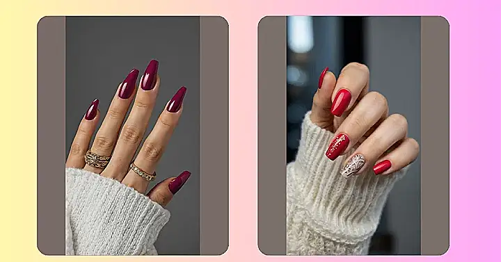 Who knew your fingertips could be such chatterboxes? These aren’t just any nails; they’re ‘gossip nails’ that are guaranteed to get people talking about your amazing style. The intricate patterns on those accent nails are like tiny, beautiful secrets waiting to be admired, while the crisp red tips on the others add that pop of confidence. Paired with that cozy red sweater and those sparkling rings, these nails complete a look that’s totally ready to drop jaws. So next time you want to make a statement without saying a word, let your nails do all the talking – and trust us, they’ll have plenty to ‘spill’!