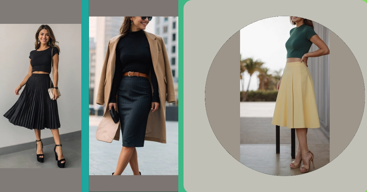 This outfit is giving off major boss vibes! The woman in the picture looks super confident and ready to take on the world. It’s a perfect example of how a simple skirt and a basic black top can be combined to create a look that’s both sophisticated and stylish. Who knew a skirt could be so powerful? You could definitely rock this look at a job interview, a first date, or even just hanging out with friends.