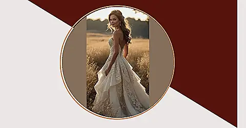 Check out this bridal dress! The fashion design here is seriously extra, in the best way. Look at all those layers, like a fancy wedding cake but for wearing! And the lace details? Someone definitely spent hours carefully stitching those floral patterns on. It’s the kind of gown that makes you feel like you just stepped out of a fairy tale movie set, ready to walk down a grassy aisle instead of a church one. You can almost hear the dramatic music playing as the sun hits that flowy skirt.