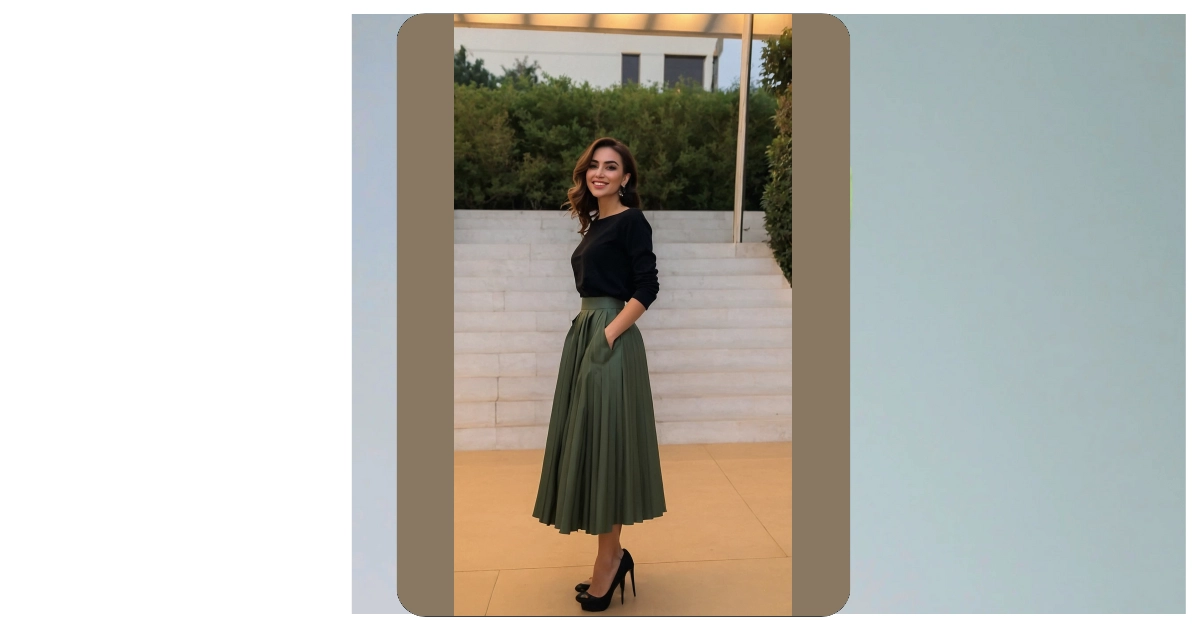 This girl totally nailed the “women skirt outfits” look! She’s got a flowy, green skirt that’s super stylish and makes her look like she’s ready to take on the world (or at least the school dance). The way the skirt is pleated is so cute, it kind of looks like she’s walking on clouds! And the black top is the perfect way to balance out the skirt’s bright color. She’s got that confident “I’m rocking this outfit” vibe, and it’s totally working!
