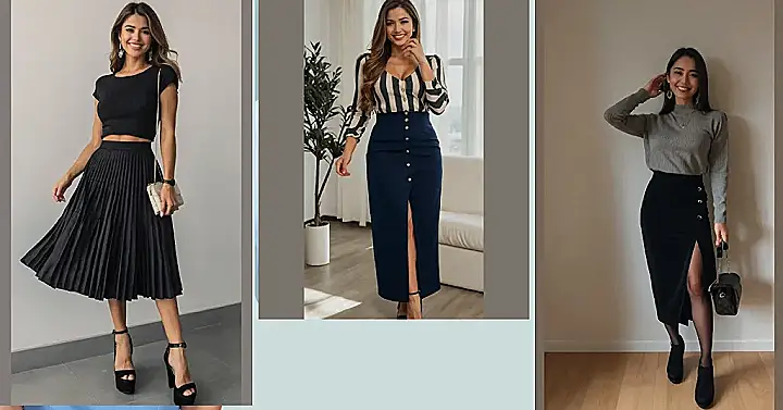 This outfit is giving off major boss vibes! The woman in the picture looks super confident and ready to take on the world. It’s a perfect example of how a simple skirt and a basic black top can be combined to create a look that’s both sophisticated and stylish. Who knew a skirt could be so powerful? You could definitely rock this look at a job interview, a first date, or even just hanging out with friends.