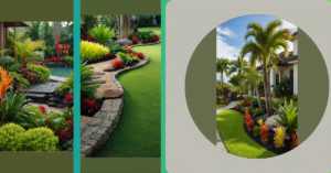 This backyard is like a mini vacation spot, right in your own home! It’s got all the good vibes of a tropical getaway, with lush green grass, a cool palm tree, and those bright red flowers that look like they just popped out of a travel magazine. Imagine relaxing on a sunny afternoon with a good book, maybe a refreshing drink, and just soaking up the beautiful scenery. It’s the perfect escape from the everyday hustle and bustle, right in your own backyard!