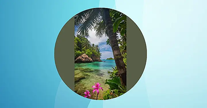 The photographer’s skills are so amazing, I bet they could make my messy bedroom look like a magazine cover (okay, maybe not *that* good). Seriously though, the way they framed the flowers against that bright blue sky is just perfect. It’s like the world’s prettiest selfie, starring the beach, the flowers, and a tiny little island photobombing in the background. Next time I’m stressed, I’m just going to stare at this picture and pretend I’m there.