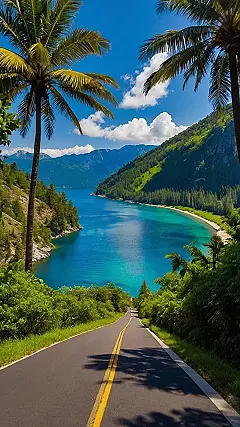 Imagine taking a road trip, but instead of endless cornfields, you get this view! This picture-perfect place looks like someone photoshopped all the best bits of Earth together: mountains, beaches, palm trees, and water so blue it makes your eyes pop. You could spend ages just snapping photos of this nature paradise.
