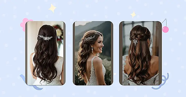 Now, let’s not forget the half up half down hairstyles that are perfect for brides who want versatility. These styles can balance the best of both worlds: elegant and playful. Ideal for a winter ceremony, it adds your unique flair, especially when adorned with snowy-white accessories like sparkling tiaras or veils flaring gently in the wind.