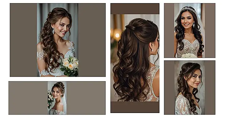 This stunning half-up, half-down hairstyle is basically the superstar of winter wedding looks. Just look at those beautiful, bouncy curls cascading down! It’s the perfect blend of practical and glamorous: the top half is neatly pulled back, so you won’t have any rogue strands flying into your face during the vows or getting caught in your cousin’s hug. Plus, all that gorgeous volume provides a secret layer of warmth around your shoulders, making you look effortlessly chic even when it’s frosty outside. It’s like your hair is saying, “I’m fancy, but also, I’m prepared for a snowball fight… just kidding, I’m a bride!”
