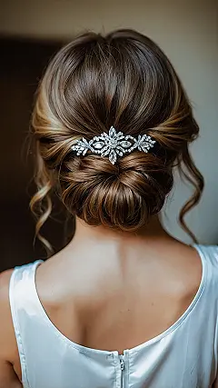 Picture this: you’re walking down the aisle feeling like a total superstar, mostly because your hair is blinding everyone with its sheer fabulousness (thanks, sparkly clip!). This isn’t just hair; it’s a crown of confidence, carefully crafted to make you feel like the most important person in the room, which, let’s be honest, you totally are on your wedding day. It’s proof that a little bit of sparkle and a lot of hairspray can turn a regular head of hair into something straight out of a fairytale, minus the talking animals (usually).