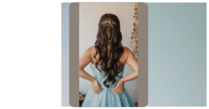 This dress is like a princess stepped out of a fairytale and said, “Hey, I’m ready to party!” It’s got all the fancy stuff – sparkly lace, a flowing skirt that makes you want to twirl, and a color that’s totally dreamy. Just imagine yourself in this dress, looking like a superstar at your next big event. Everyone will be asking, “Where did you get that amazing dress?!”