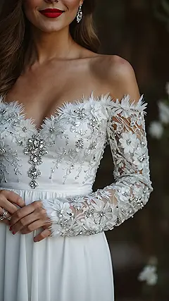 Forget those resolutions about wearing more sweatpants; New Year’s Eve 2025 is clearly calling for an outfit that says “I woke up like this… fabulous!” Just look at this dress, practically dripping in jewels and those super cool feathery details around the shoulders. It’s the kind of showstopper that makes everyone wonder if you’re secretly royalty or just planning to steal the spotlight as the ball drops. Plus, with all that sparkle, you might actually be a human disco ball, which is a total win for any NYE party and way more fun than fading into the background.