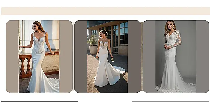 Forget about Cinderella’s glass slipper, this dress might just be the real showstopper. Looking at this gorgeous gown, you can almost hear it whispering, “I’m not just a dress, I’m an experience!” With its stunning lace details and that sleek mermaid fit, it’s basically saying, “Move over, regular clothes, there’s a new queen in town.” It’s the kind of top wedding dress that makes you wonder if it also comes with a personal spotlight and a red carpet, because anything less just wouldn’t do it justice.