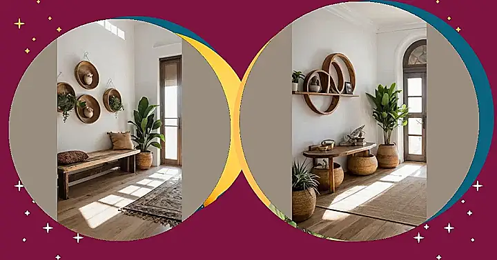 Those aren’t just circles, they’re portals to a cooler living room! Can you believe how awesome these wall decorations are? It’s like they lassoed the sun and moon, trapped some plants, and said, “Now, be stylish!” And that cozy candle? It’s ready to set the mood for epic movie nights.