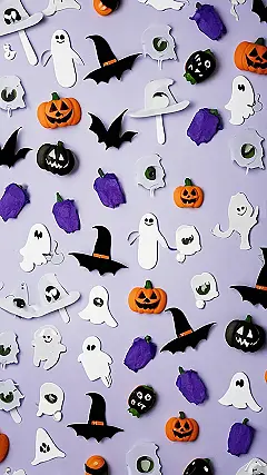 This Halloween wallpaper is like a spooky party on your screen! It’s full of adorable ghosts, silly bats, and even some pumpkin faces that are almost too cute to be scary. The bright purple background is perfect for showing off all the fun Halloween decorations.
