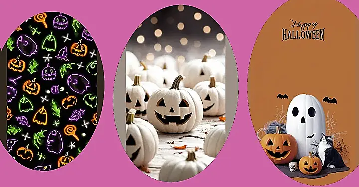 These jack-o’-lanterns are ready to party! They’re not your average orange pumpkins, though. These guys are all decked out in white, looking spooky and stylish at the same time. Imagine walking down a dark street, and suddenly, these glowing white faces pop out at you! They’re like ghosts that decided to dress up as pumpkins.