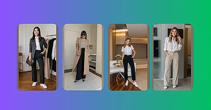 So, picture this: you’re heading into a super important meeting, but you still want to feel like YOU. This outfit is like the perfect blend of business and comfy cool! Blazer? Check. Sharp pants? Check. Comfy sneakers that say “I’m ready to conquer this day but also maybe sneak in a quick dance break”? Double check!